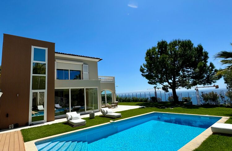 La villa a un terrain plat de 750 m2 avec piscine.