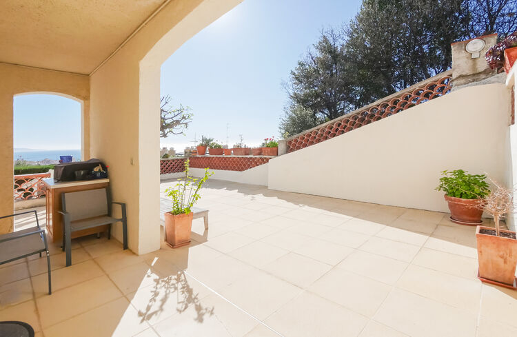 Situato nella zona residenziale di Le Hameau, questo spazioso appartamento di 5 stanze con piscina privata e vista mare è così composto: